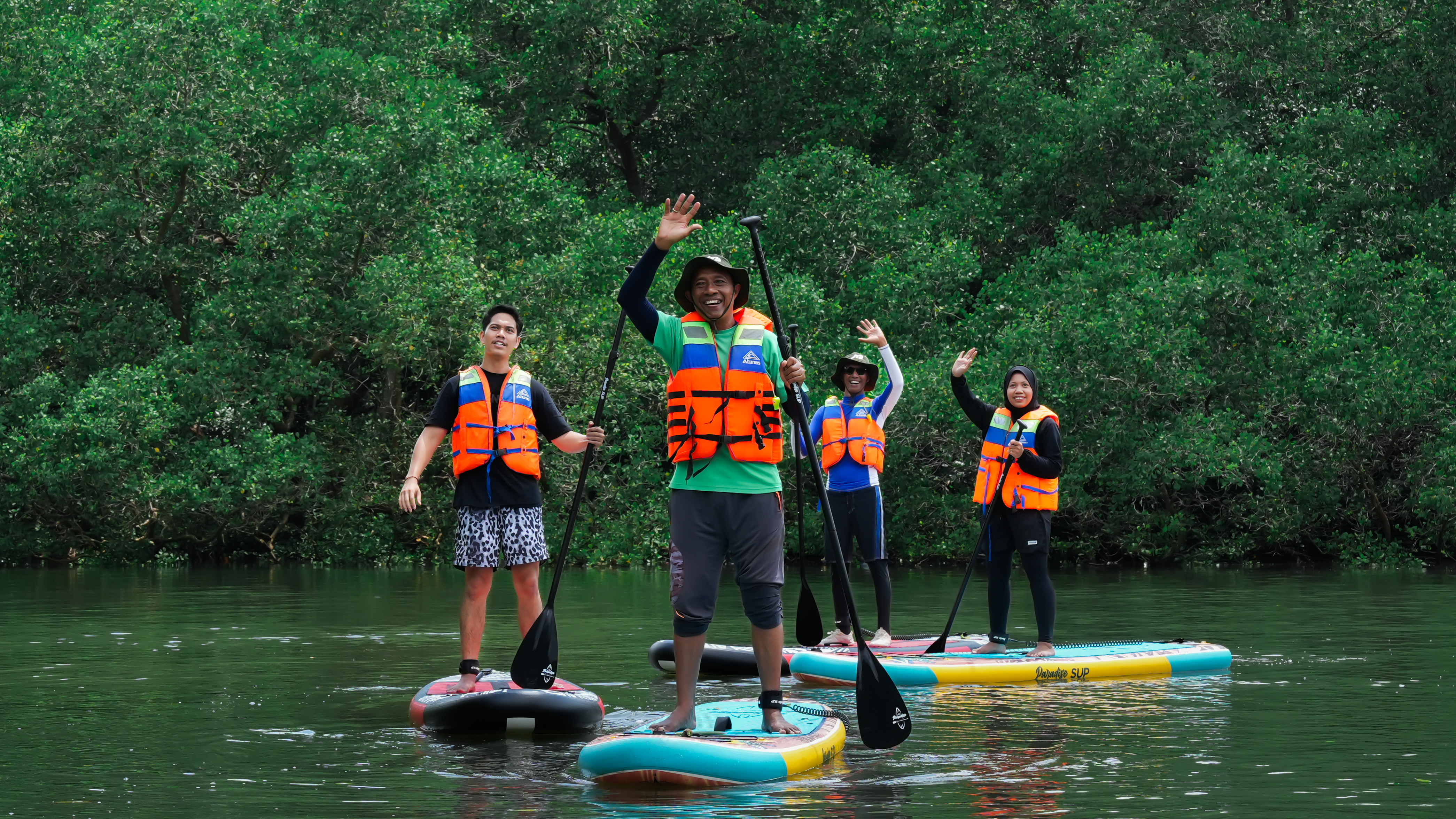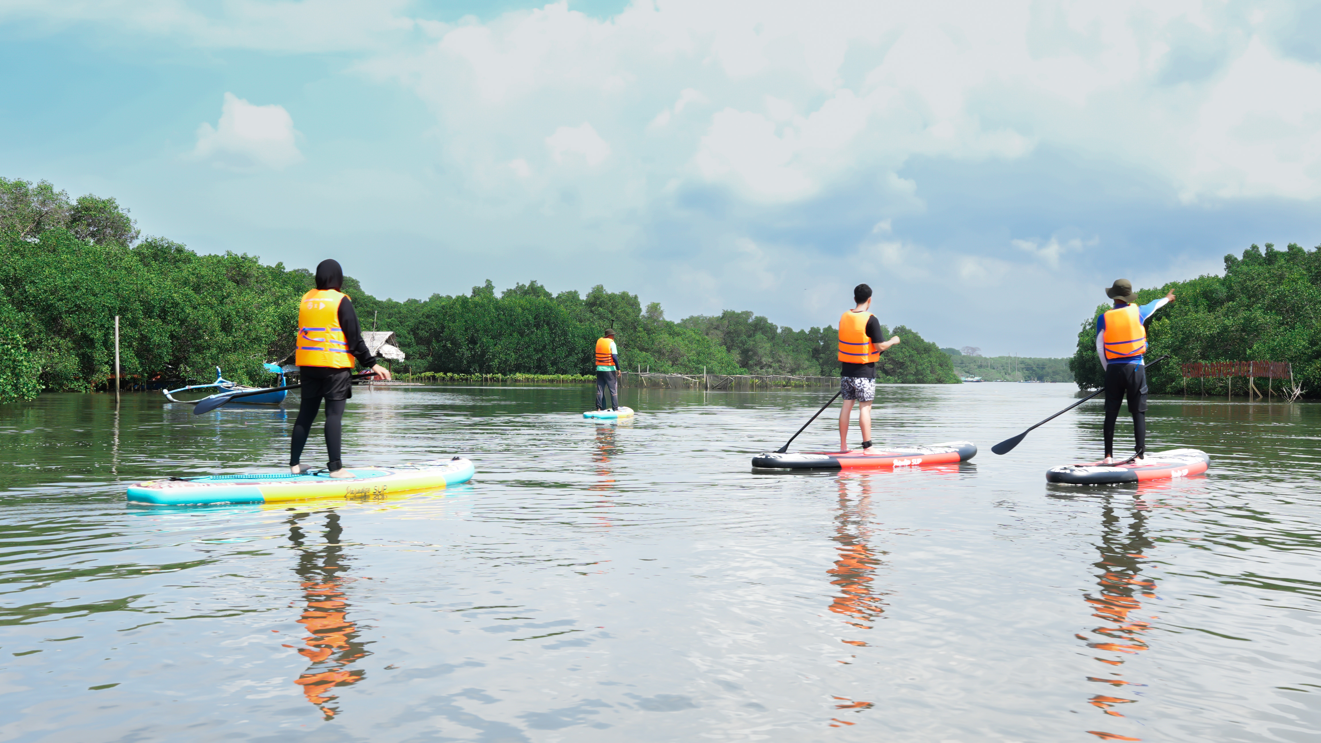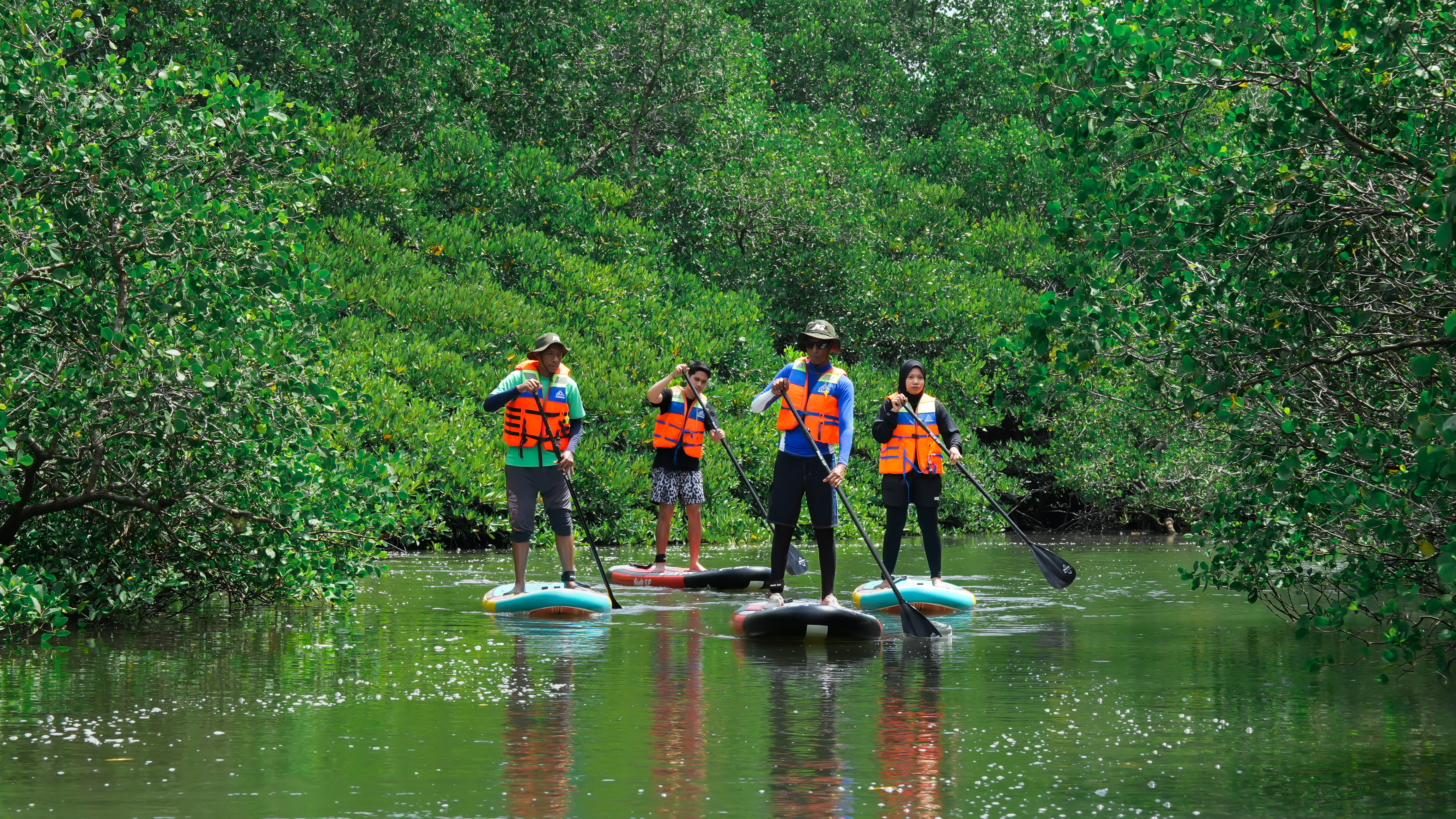 Gliding quietly through the mangrove channels on a paddle board allows visitors to observe the environment from a close and respectful distance. It is an experience that blends outdoor activity with eco-tourism while highlighting the importance of mangrove conservation.