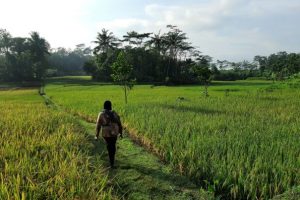 The road to the temple is winding and uphill, passing through beautiful rural landscapes, rice fields, and local villages.
