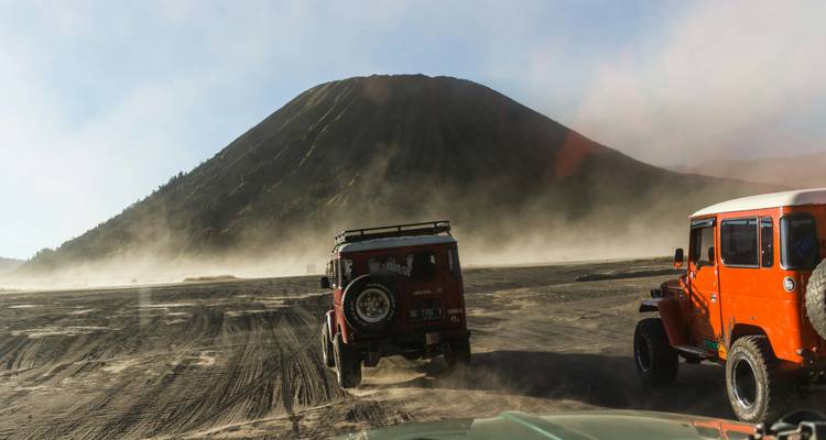 After sunrise, the adventure continues as you descend into the Bromo caldera. The vast, ash-covered terrain creates a unique atmosphere, often compared to the surface of the moon. Here, you can explore the area and get closer to the iconic volcano.