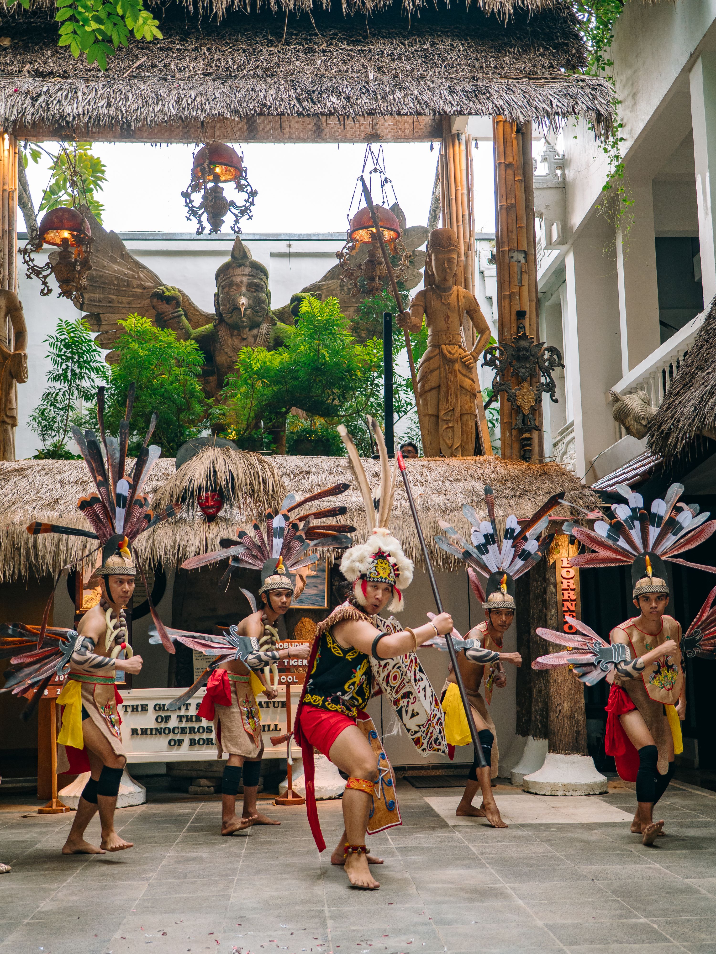 meanwhile, dayak culture are being performed at the stage at tugu hotel bali.