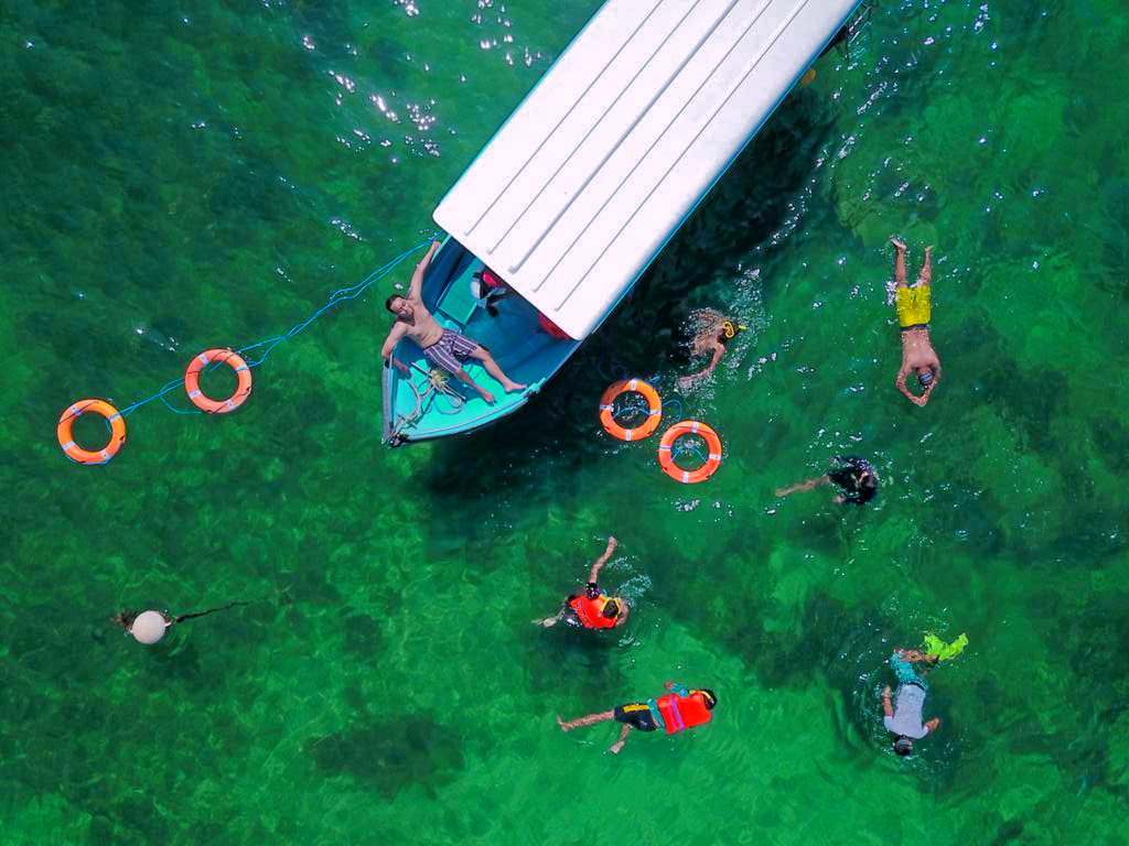Fish feeding above boat. Snorkeling that has been guided by a professional guide.