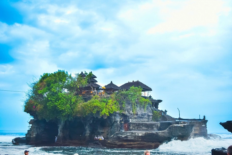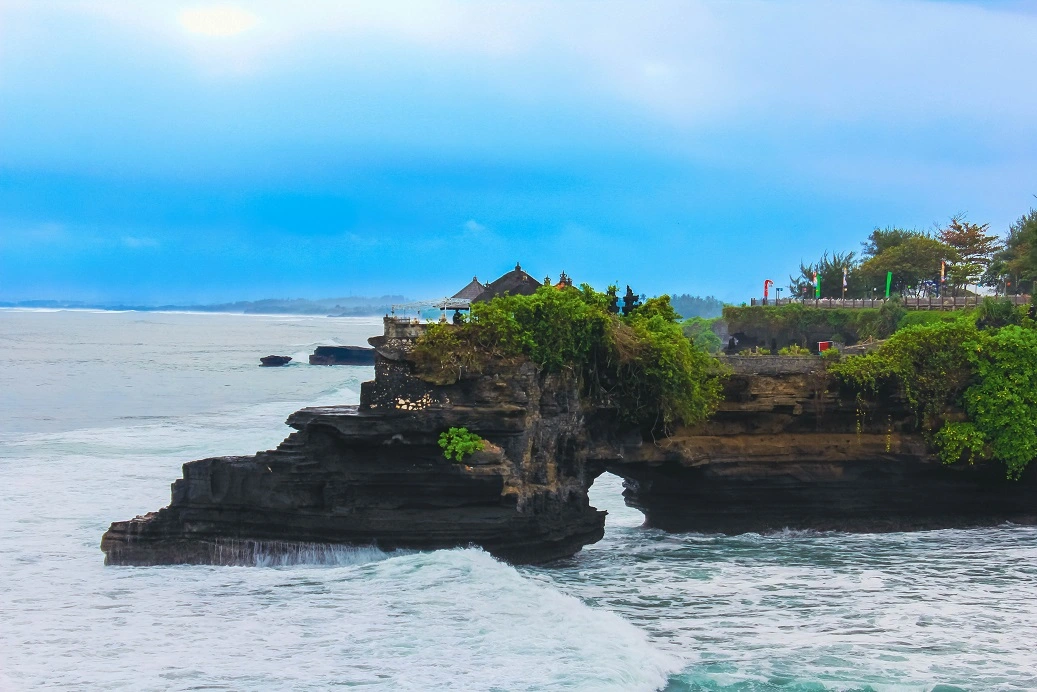 Tanah Lot is a rock formation off the Indonesian island of Bali. It is home to the ancient Hindu pilgrimage temple Pura Tanah Lot, a popular tourist and cultural icon for photography.