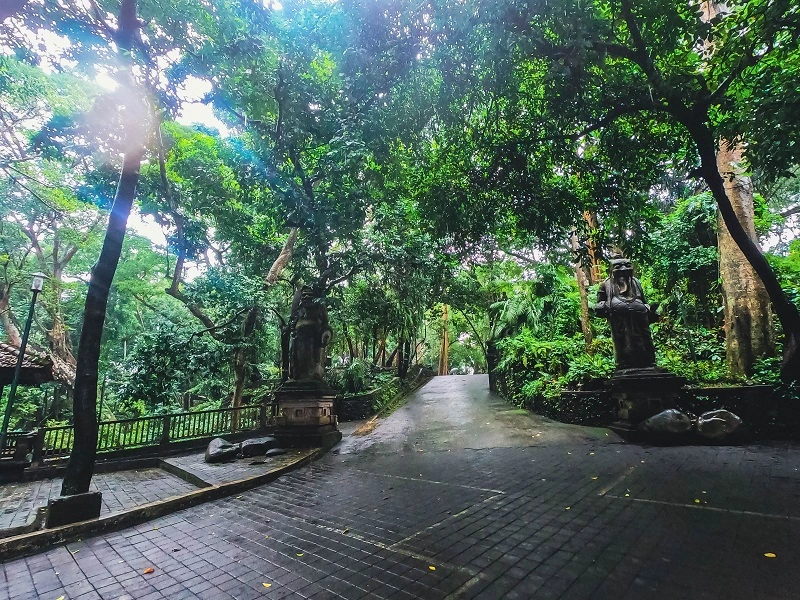Forest temple & animal sanctuary with many free-roaming monkeys on the grounds.