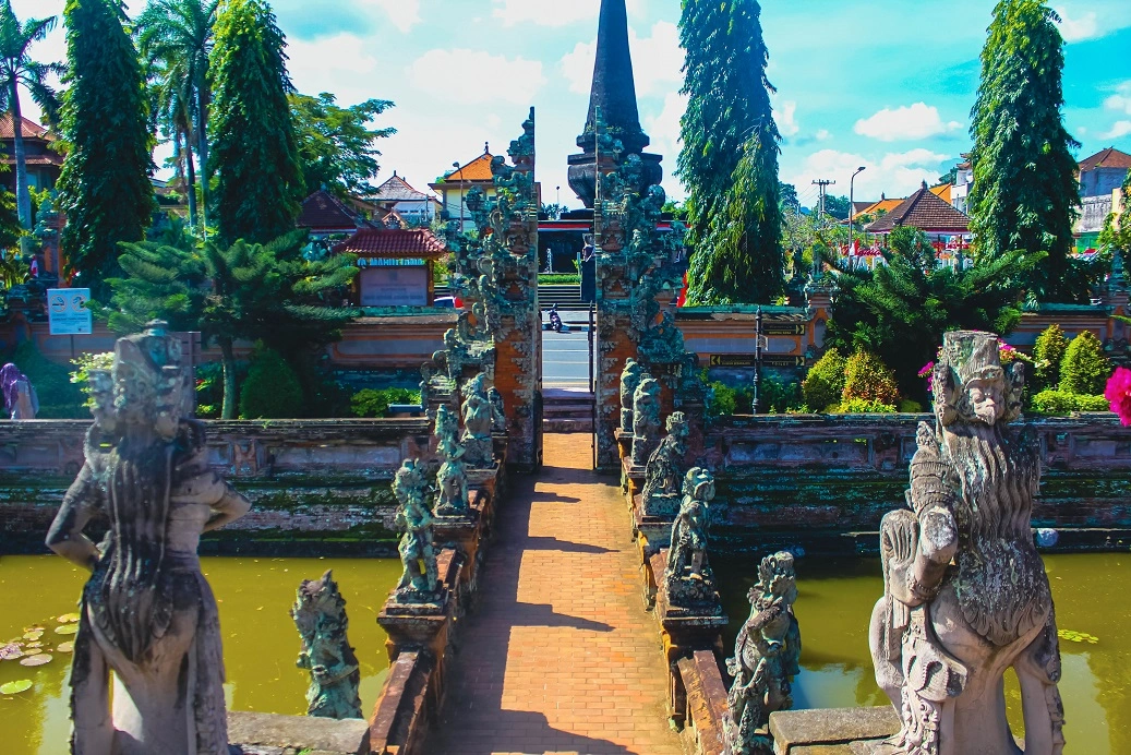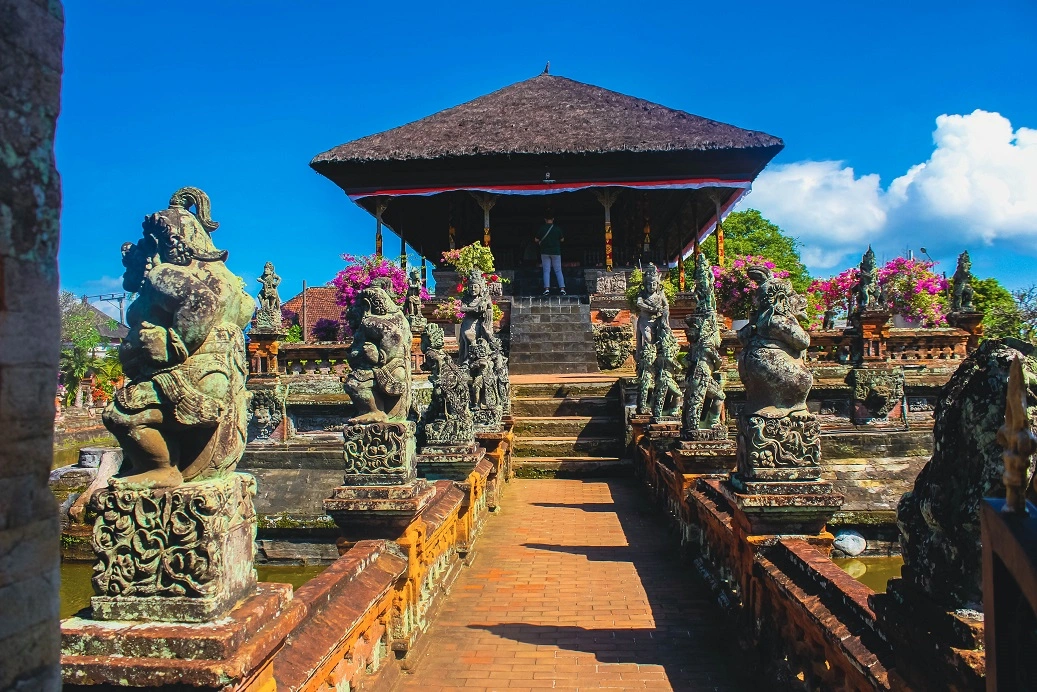 The tour begins at Kertha Gosa in Klungkung. This historic pavilion was once part of the royal palace complex and functioned as a traditional court of justice. Inside the Bale Kambang pavilion, you will see detailed ceiling paintings that illustrate moral law, karma, and traditional Balinese judicial principles. Therefore, Kertha Gosa offers valuable insight into Bali’s royal heritage and artistic storytelling.