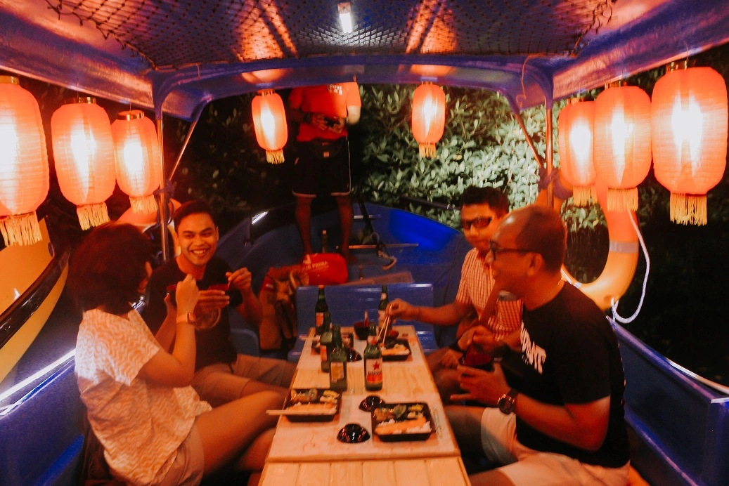 As the boat sails through the calm waters, you'll be served a Japanese-style dinner. Enjoy delicious dishes as you glide gently under the starlit sky, surrounded by the peaceful sounds and sights of the mangrove. The serene environment and the gentle sway of the boat create a perfect backdrop to a meal that combines culinary delight with cultural elegance.