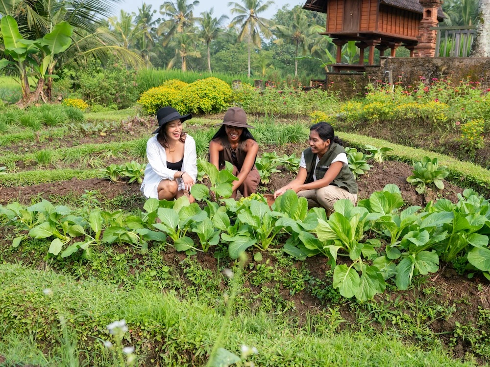 Accompanied by a guide, you will continue to Begawan Biji, where the experience begins with a farm tour. During this visit, guests can enjoy a closer look at the surrounding farm environment while learning about the ingredients, growing methods, and natural setting that support Begawan Biji’s farm-to-table concept. This part of the journey helps guests understand the connection between land, harvest, and dining.