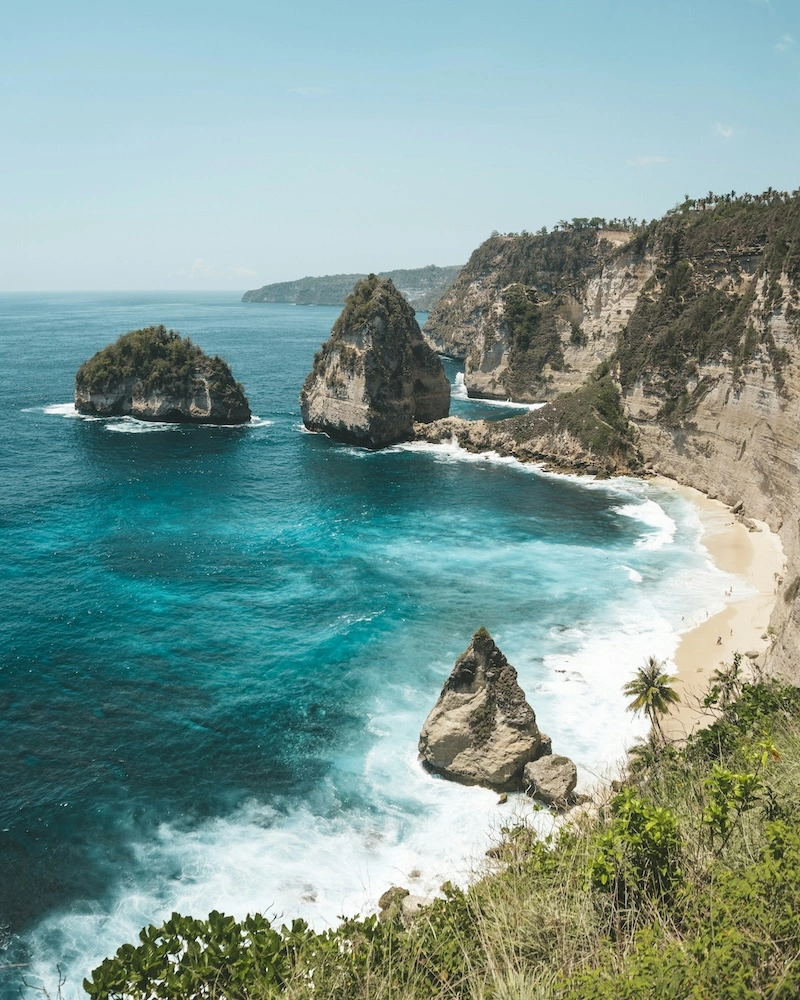 • Visit the iconic Kelingking Beach, famous for its dinosaur-shaped cliff view